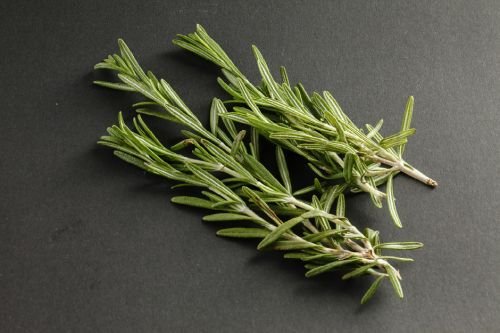 Gri dikdörtgen fon üzerinde 4 tane gelişigüzel dizilmiş biberiye var. Bir karış uzunluğundalar. İnce, sık ve yeşil yapraklara sahipler. Zeytin yapraklarının daha ince haline benziyor.