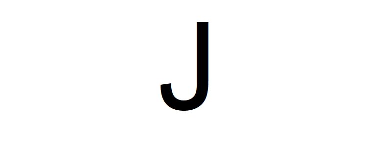 Büyük j harfi, kıvrımlı ucu sol tarafta kalacak şekilde ters dönmüş bir bastonu andırıyor. Aynı zamanda kıvrımlı şemsiye sapına benzeyen harf, dik bir çizgiden ve bu çizginin ucundan başlayıp sola uzanan küçük bir yarım çemberden oluşuyor.