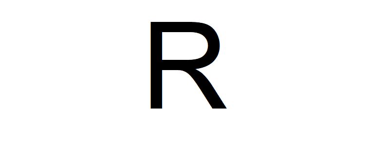 Büyük r harfi, büyük p harfinden ve bu harfin oval ucunun alt kısmının orta noktasından başlayıp harfteki dik çizginin alt ucuyla aynı hizada olacak şekilde yere uzanan sola eğimli kısa bir çizgiden oluşuyor.