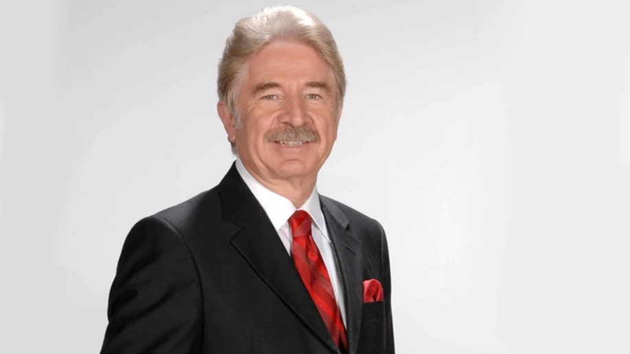 Görselde göğsünden yukarısı görünen Triebel, ayakta mavi bir fon önünde duruyor.