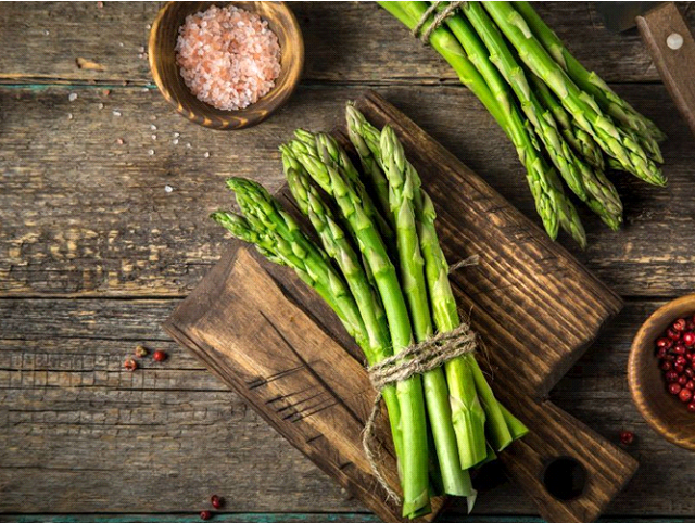 Dikdörtgen şeklindeki fotoğrafta kuşkonmaz adlı sebze yer alıyor. Kahverengi tahta masa üzerinde, ahşap iki kâse vardır. Birinin içinde pirince benzeyen taneler bulunuyor ve biraz etrafa saçılmıştır. Diğerinin içinde ise küçük, yuvarlak ve kırmızı taneler vardır. Bunlar da birazcık etrafa saçılmıştır. Masanın üzerinde saplı bir kahverengi tahta duruyor. Tahtanın üzerine ise ip ile bağlanmış çok sayıda kuşkonmaz sebzesi konumlandırılmıştır. Aynı şekilde direkt masanın üzerinde de yer alıyor. Kuşkonmaz, uzun ve ince bir yapıya sahiptir. Rengi yeşildir. Uç kısımlarında üst üste yaprakları vardır. Ayrıca gövde kısmında da hafif yapraklar bulunmaktadır. Uç kısımlarına doğru sivrileşiyor.